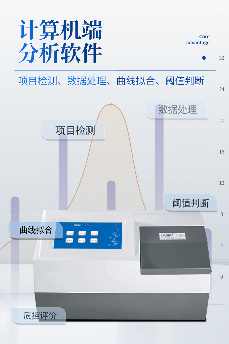 13.工作站軟件:隨機配備專業的計算機端酶標儀分析軟件,具備完善的項目檢測、數據處理、曲線擬合、 閾值判斷、質控評價、數據庫管理、以及自定義報告單格式等功能