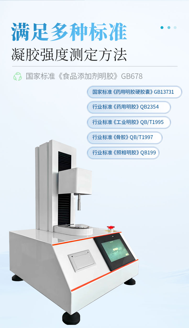 15318959787凝膠強(qiáng)度測(cè)儀適用于凝膠、果膠、硅膠、結(jié)冷膠、卡拉膠、瓊脂、阿拉伯膠、黃原膠、魔芋膠和瓜爾膠等的破裂強(qiáng)度、彈性、延展性、拉伸強(qiáng)度、粘附度、回復(fù)性等測(cè)試。凝膠強(qiáng)度測(cè)儀也叫凍力強(qiáng)度儀 ,明膠凝凍強(qiáng)度測(cè)定儀,組織分析儀或凍力測(cè)試儀。