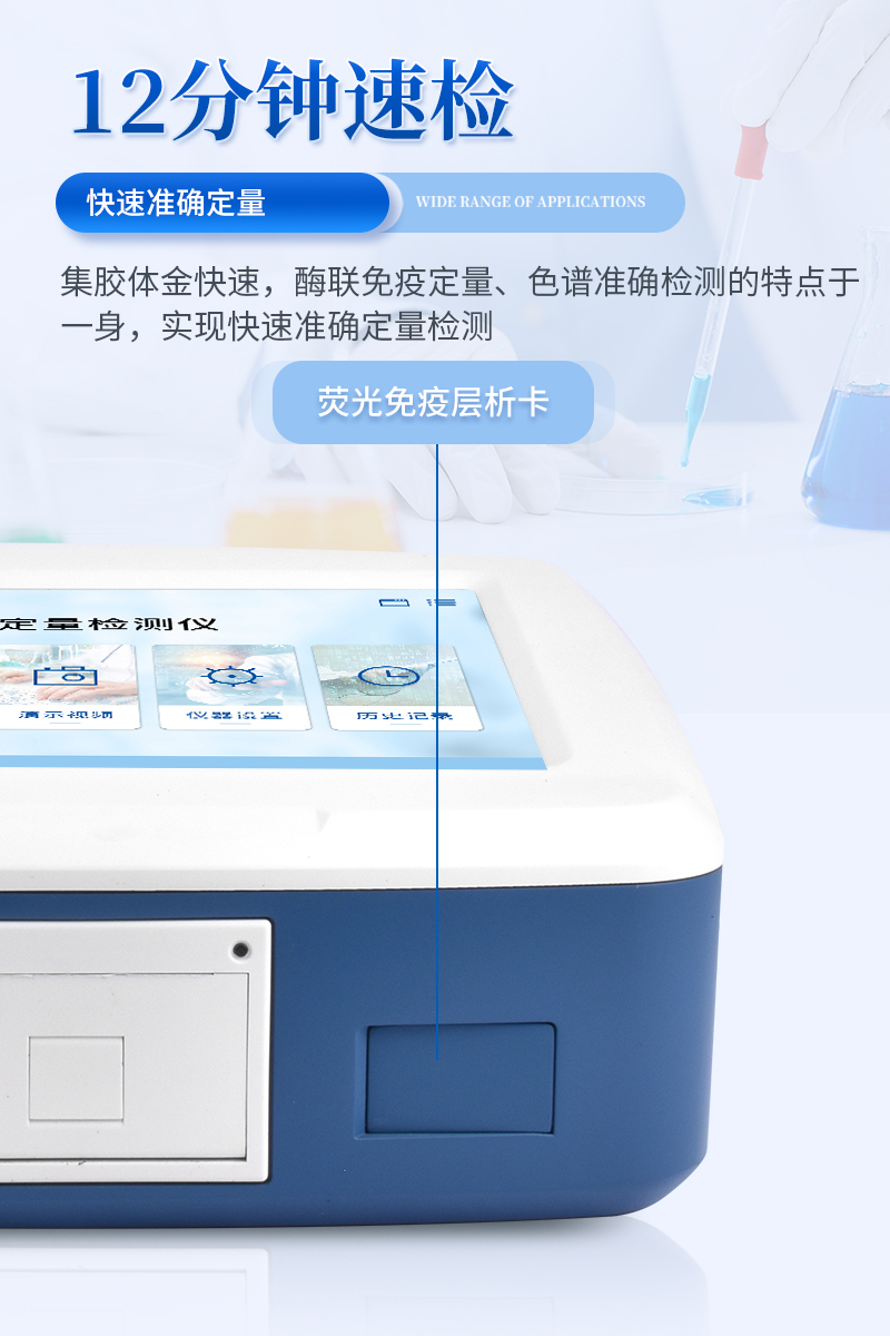 3、快速準(zhǔn)確定量:集膠體金快速,酶聯(lián)免疫定量、色譜準(zhǔn)確檢測的特點(diǎn)于一身,實(shí)現(xiàn)快速準(zhǔn)確定量檢測;